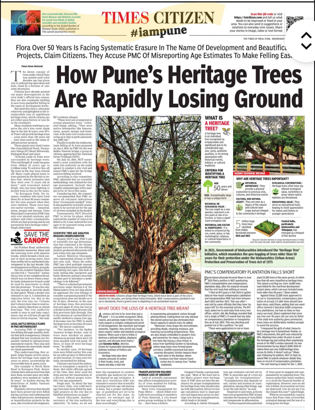How Pune's heritage trees are rapidly losing ground: Flora over 50 years is facing systematic erasure in the name of development and beautification projects, claim citizens. They accuse PMC of misreporting age estimates to make felling ...