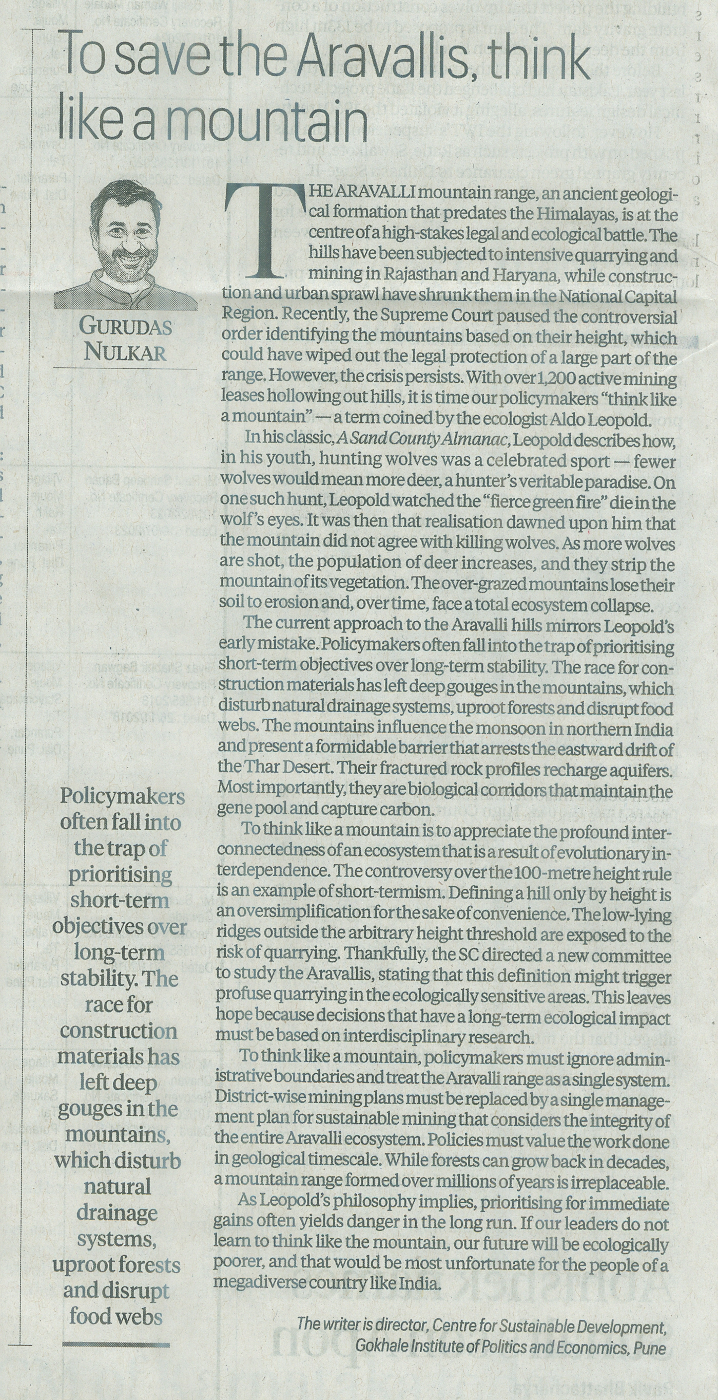 To save the Aravallis, think like a mountain