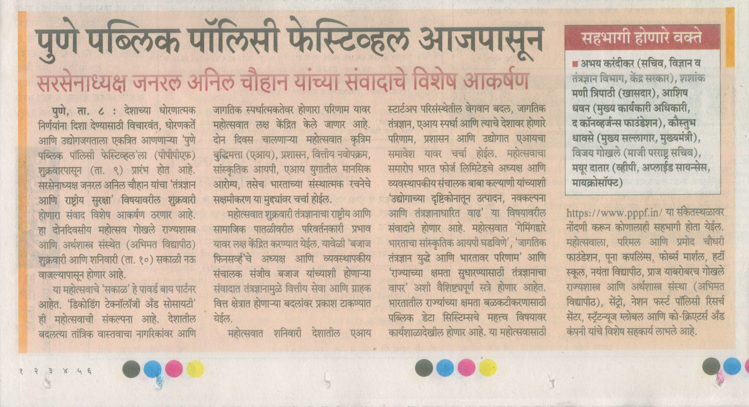 पुणे पब्लिक पॉलिसी फेस्टिवल आजपासून: सरसेनाध्यक्ष जनरल अनिल चौहान यांच्या संवादाचे विशेष आकर्षण